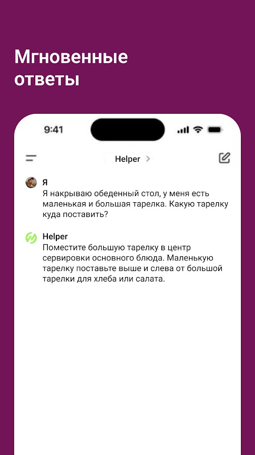 • Доступность 24/7: Helper всегда на связи и готов помочь в любое время суток.