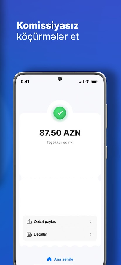 • Делай быстрые и БЕСПЛАТНЫЕ переводы: Всего в несколько касаний отправляй и принимай деньги без комиссии на электронный кошелек Hesab.az.