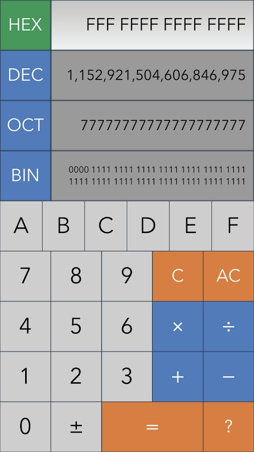 Скачайте приложение Hex,Dec,Oct,Bin(Dev Calc) для Android бесплатно - последняя версия (2.3.12) уже доступна для установки на ваш телефон или планшет.