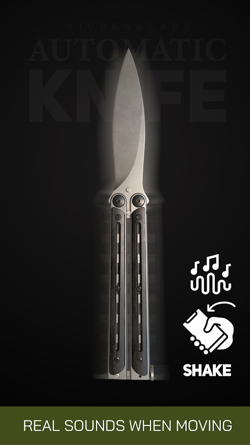 Например, выбери нож бабочка и встряхни устройство. Нож откроется. Если зажмешь рукоять ножа и начнешь двигать устройством, то услышишь звуки ножа.