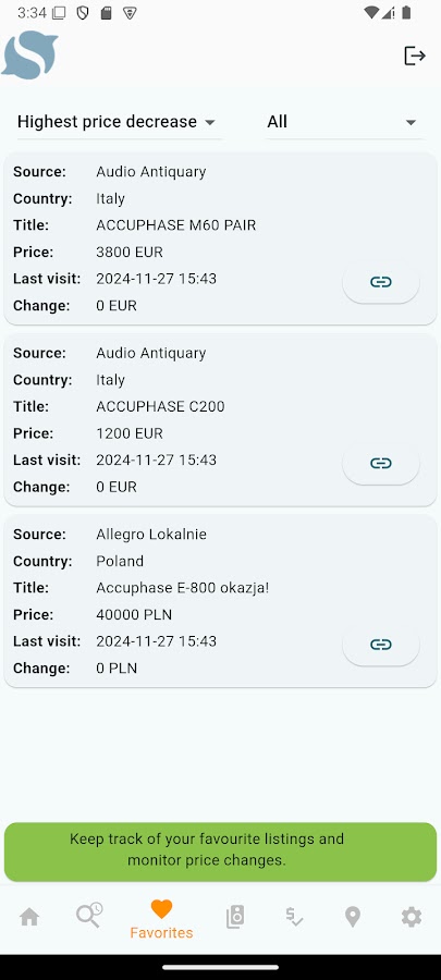 • Отслеживайте изменения цен в ваших любимых объявлениях.