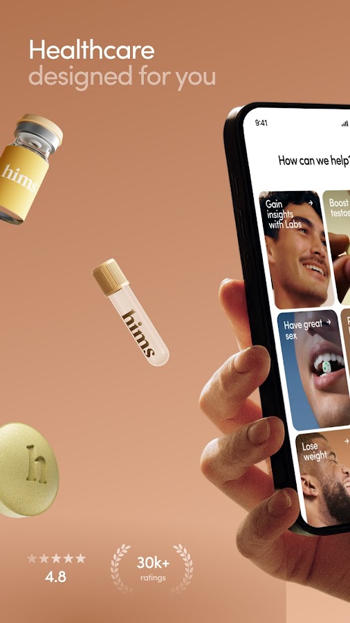 Hims: Персонализированная телемедицина для удобного и качественного обслуживания, 100% онлайн. Получите доступ к лучшим в своем классе методам лечения проблем мужского здоровья, таких как выпадение волос, сексуальное здоровье, низкий уровень тестостерона, снижение веса, комплексные лабораторные анализы, психическое здоровье и уход за кожей.