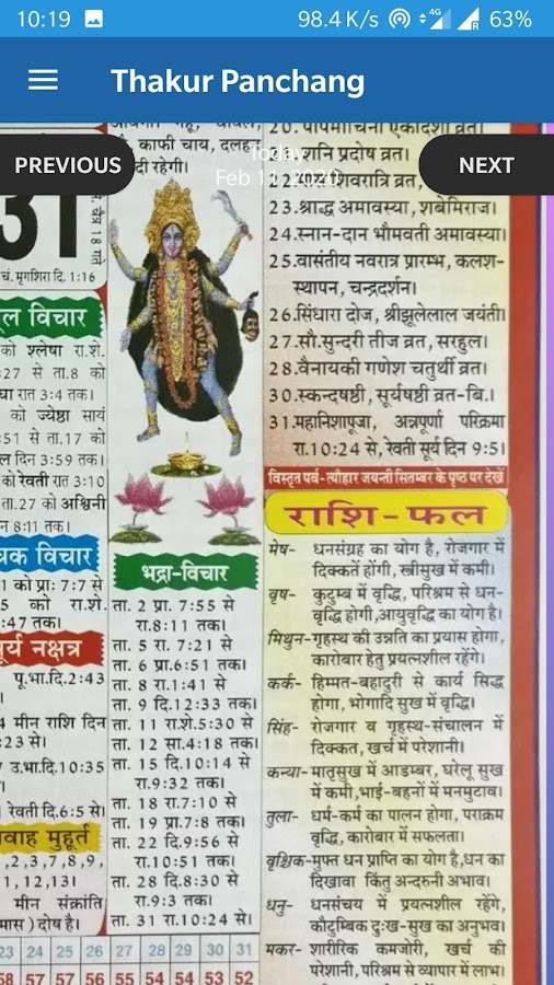 Описание Hindi Calendar 2026 Panchang