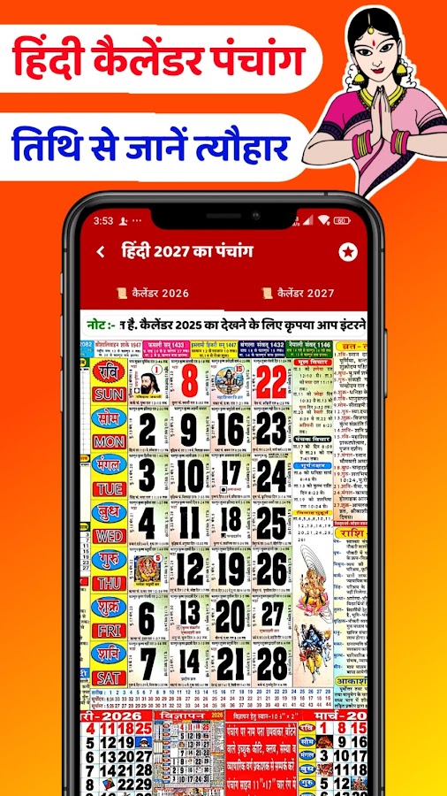 Скачайте приложение Hindi Calendar Panchang 2027 для Android бесплатно - последняя версия (2.9) уже доступна для установки на ваш телефон или планшет.