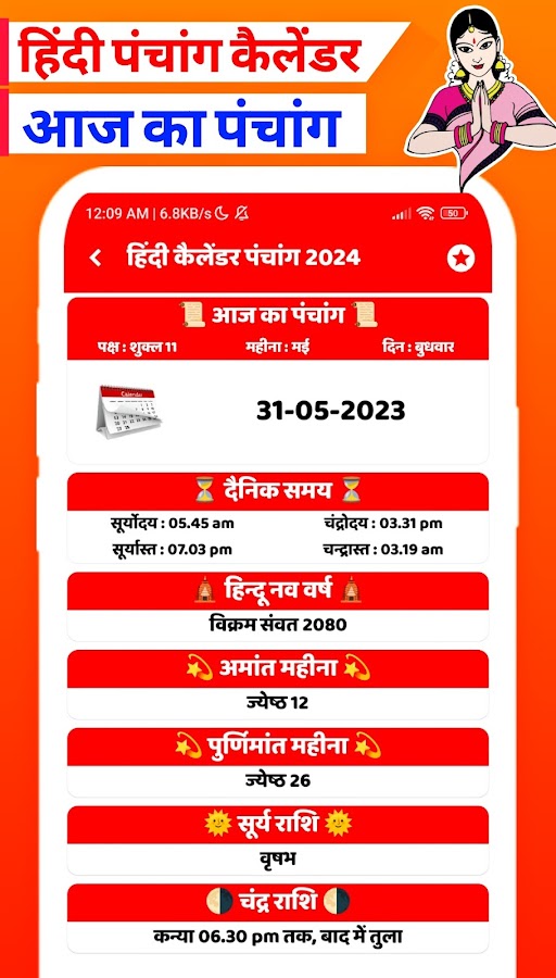 Скачайте приложение Hindi Calendar Panchang 2026 для Android бесплатно - последняя версия (3.0) уже доступна для установки на ваш телефон или планшет.