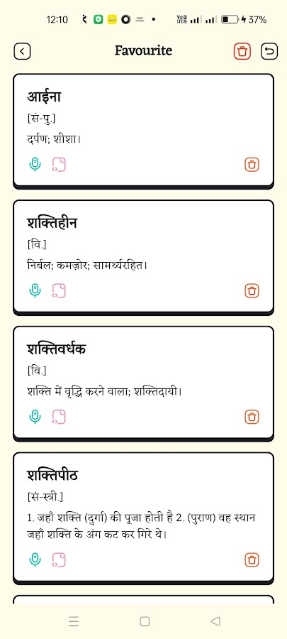 * Это бесплатно словарь, который может дать вам подробные хинди значения любого слова на хинди.
