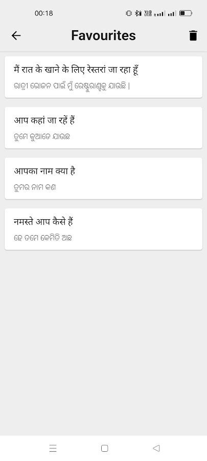 Это приложение показывает предыдущие переводы в разделе истории приложения. Он также имеет любимый раздел для хранения ваших любимых переводов.