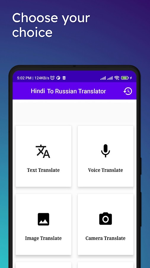 Скачайте приложение Hindi To Russian Translator для Android бесплатно - последняя версия (1.55) уже доступна для установки на ваш телефон или планшет.