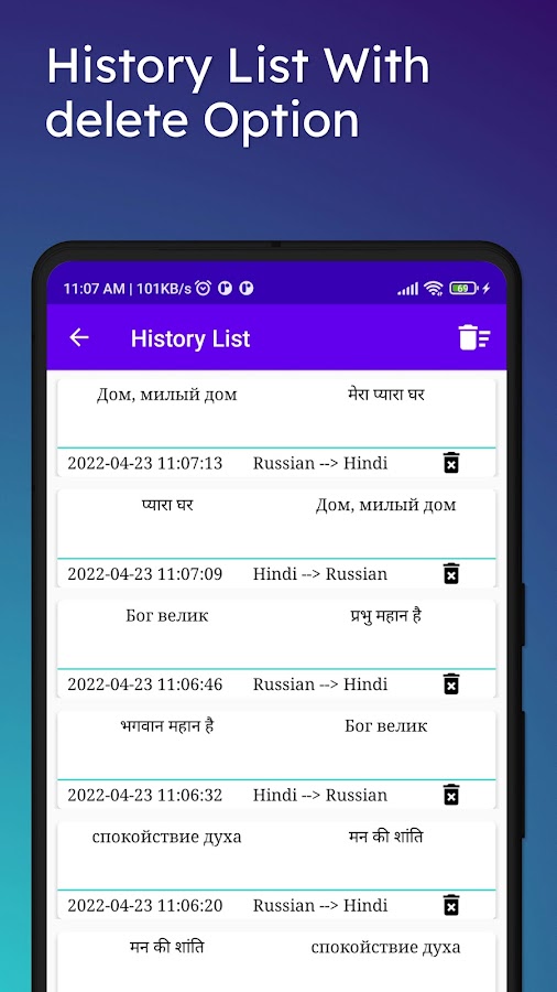 Хинди-русский переводчик для перевода текста, перевода слов, перевода абзацев, а также перевода полных предложений. Это приложение также используется для перевода с хинди на русский и перевода с русского на хинди также для слов, текста и полных предложений.