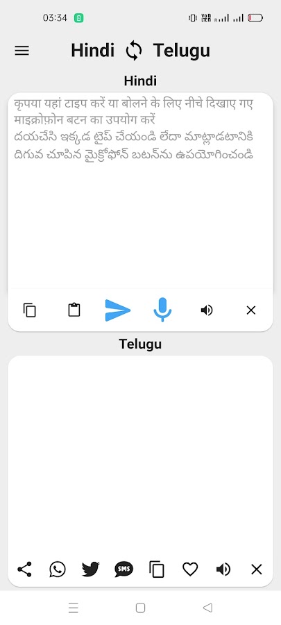 Приложение переводчик речи с хинди на телугу.