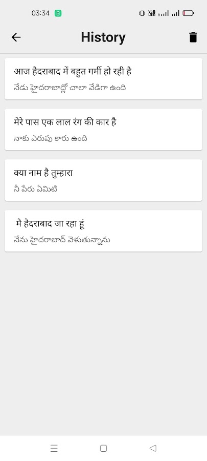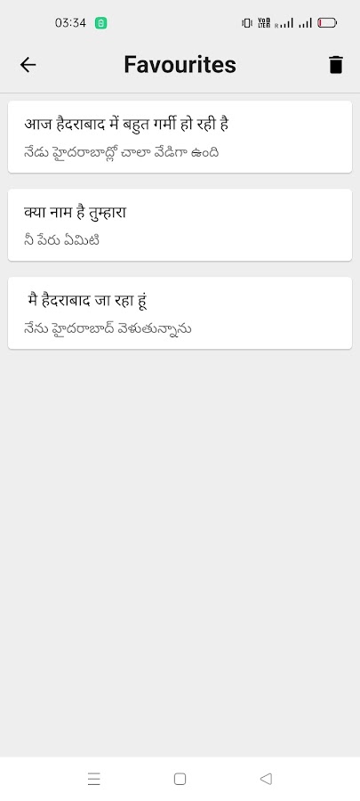 Это приложение показывает предыдущие переводы в разделе истории приложения. Он также имеет любимый раздел для хранения ваших любимых переводов.