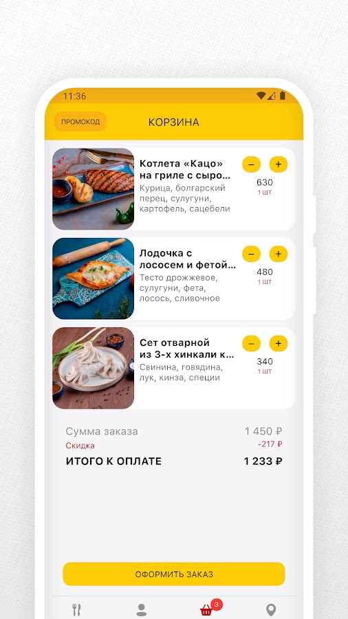— Приложение запоминает адреса доставки, имя и телефон – после первого заказа адрес не нужно вводить снова.