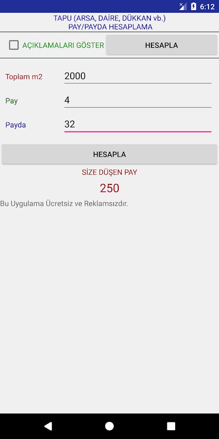 Скачайте приложение Hisseli Tapu Pay Payda Hesapla для Android бесплатно - последняя версия (1.0.3) уже доступна для установки на ваш телефон или планшет.