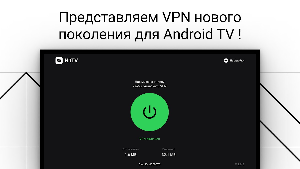 С HitTV вы можете безопасно и анонимно использовать интернет на своем телевизоре. Просто установите приложение — это моментально, и не требует ввода персональных данных.