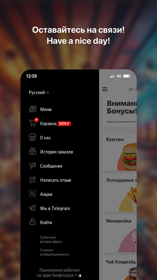 — Сделать заказ быстро и с мгновенным подтверждением через приложение;