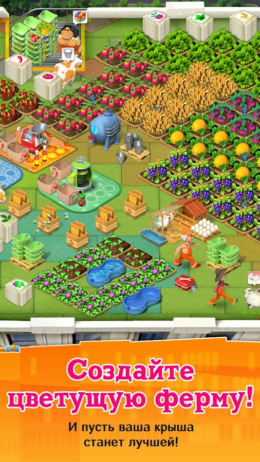 Стань звездой телеэкрана, построив на крыше небоскреба лучшую ферму в округе. Звучит невероятно, но для Лизы, которая стала участницей шоу «Хобби Ферма», путь к успеху именно таков. Помоги девушке достичь высот в фермерском искусстве! Тебе необходимо сажать растения, поливать их, следить за коровами, курами и козами. Владелец сети супермаркетов здорового питания Карлос будет рад купить у тебя урожай. На помощь тебе придут волонтеры и фермеры, которые будут собирать урожай и присматривать за оборудованием. Ты готов? Тогда вперед к славе, богатству и собственной ферме на крыше небоскреба!