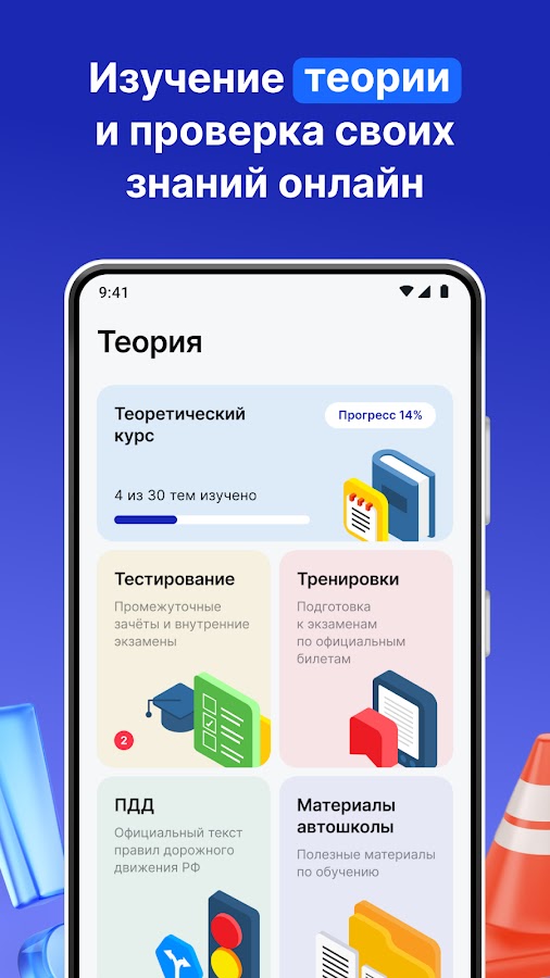 Тренировка по билетам и темам ПДД, сдача зачетом и экзаменов.
