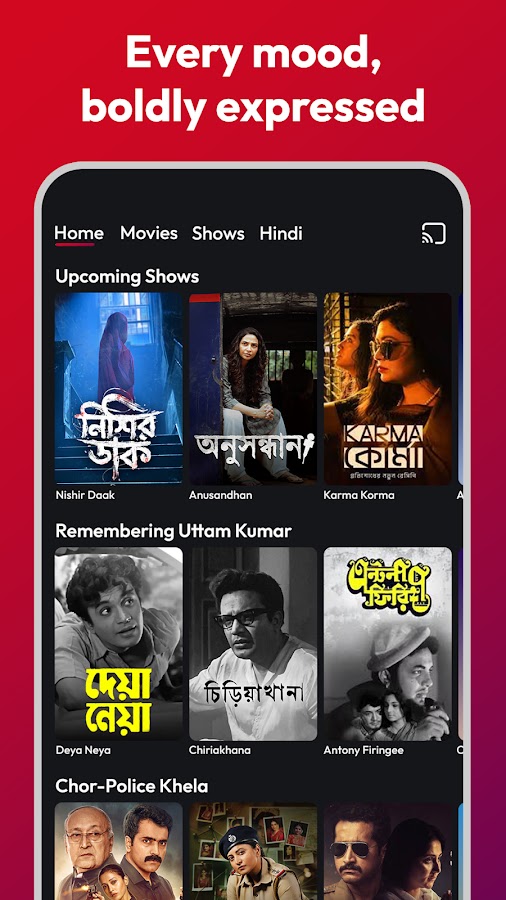 На hoichoi, платформе потокового вещания по запросу для бенгальцев по всему миру, мы доставляем истории на каждый экран и в любое время, от Калькутты до Калифорнии, от Муршидабада до Мумбаи. Бенгальский контент — это не просто контент для просмотра запоем, это гордость за свою культуру.