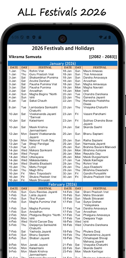 Это делает приложение полным индийским календарем религиозных праздников на 2026 год.