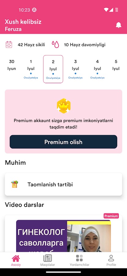 -Тезрок хомиладор болишда йордам беради -Тана вазни индекси назорати; -Хайз кунларини киритиб бориш йордамида таксминий кутилайотган хаиз кунлари назорати; -Овуляция кунини аниклашда тиббий маслахат беради; -Qiziqarli видеодарслар ва maqolalar orqali тиббий саводхонликни ошириш;