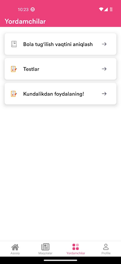 Homiladorlik maktabi mobil ilovasi quyidagi rejimlarda репродуктивный yoshdagi ayollar учун тибби саводхонликни оширишда йордам беради: Homiladorlikni rejalashtirish rejimi