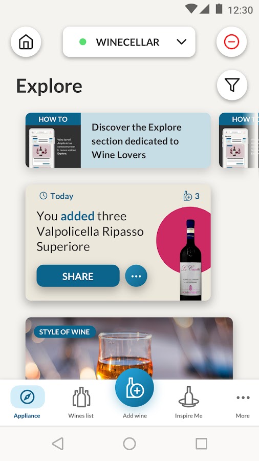 — Каталогизируйте свои любимые винные бутылки и откройте все их секреты, активировав виртуальный винный шкаф. Создайте свою винную карту, управляйте ею и вдохновляйтесь предлагаемыми сочетаниями блюда и вина.