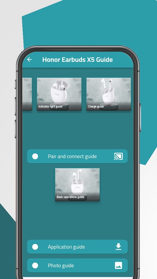 Наше приложение Honor Earbuds X5 Guide. Содержит все советы, подсказки и инструкции, необходимые для максимально эффективного использования вашего устройства. В этом приложении есть все, что вам нужно знать: от настроек до настройки оповещений. Вот некоторые из функций, которые вы можете ожидать.