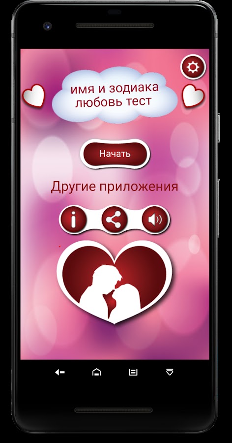 Наслаждайтесь лучшим бесплатным приложением для проверки имени и гороскопа и делитесь им с друзьями, чтобы они тоже могли присоединиться к веселью !! Это приложение имеет много функций, включая уникальный тестер совместимости любви, разработанный с использованием HD-графики и анимации. Этот тест на любовь очень прост в использовании и подходит для всех возрастов. Размер нашего приложения невелик, поэтому он не займет много места на вашем устройстве, его можно будет сохранить на SD-карту, и он доступен на более чем 60 языках.