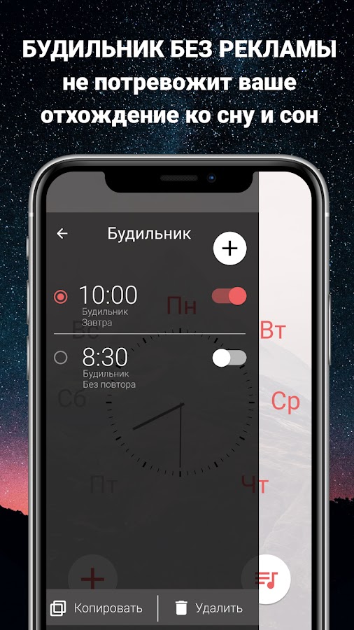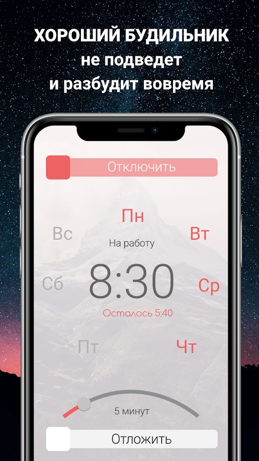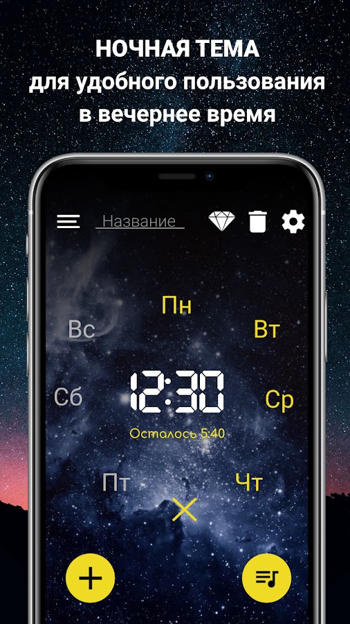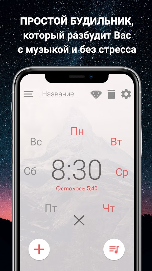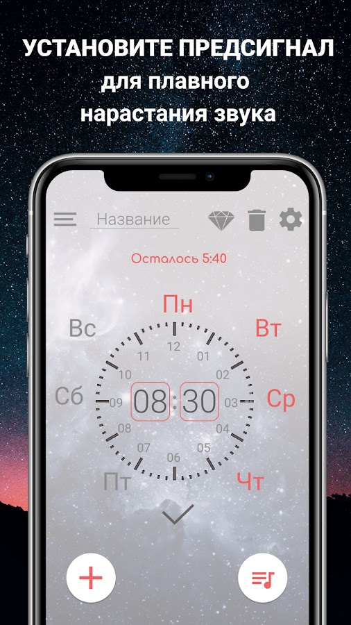 Хороший будильник с музыкой поможет просыпаться без стресса, легко и спокойно. Установите собственный предсигнал и он вам поможет подготовиться к сигналу и подъему.