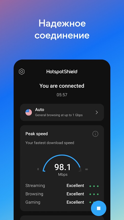 ■ Версия Hotspot Shield VPN предоставляет доступ к контенту США из ваших избранных приложений или сайтов без ограничений. Бесплатная версия содержит некоторое количество рекламы.