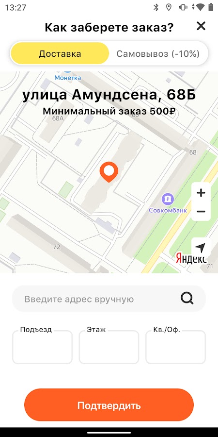 ∙ возможность быстро находить ближайшие филиалы для самовывоза, за который мы дарим скидку 10%;