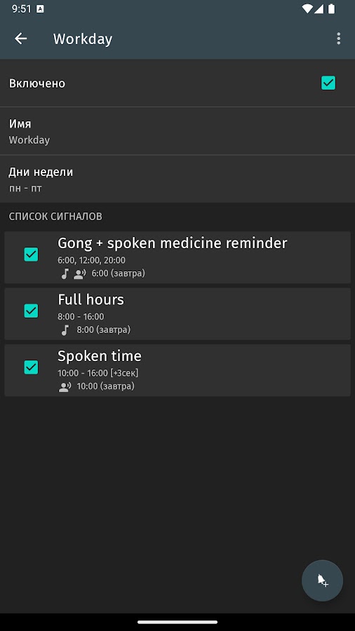 С помощью этого приложения почасовых оповещений вы можете воспроизводить короткие звуки в выбранное время в течение дня. Это может помочь вам управлять и повышать свою производительность. Голосовые почасовые напоминания будут держать вас в курсе ваших лекарств, таблеток или воды для питья.