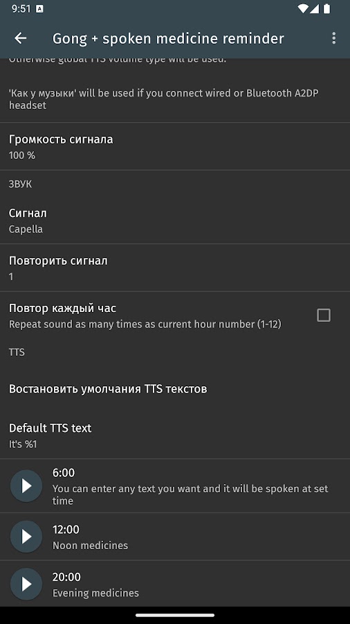 — TTS (TextToSpeech) — озвучивание времени или любого сообщения, которое вы установите