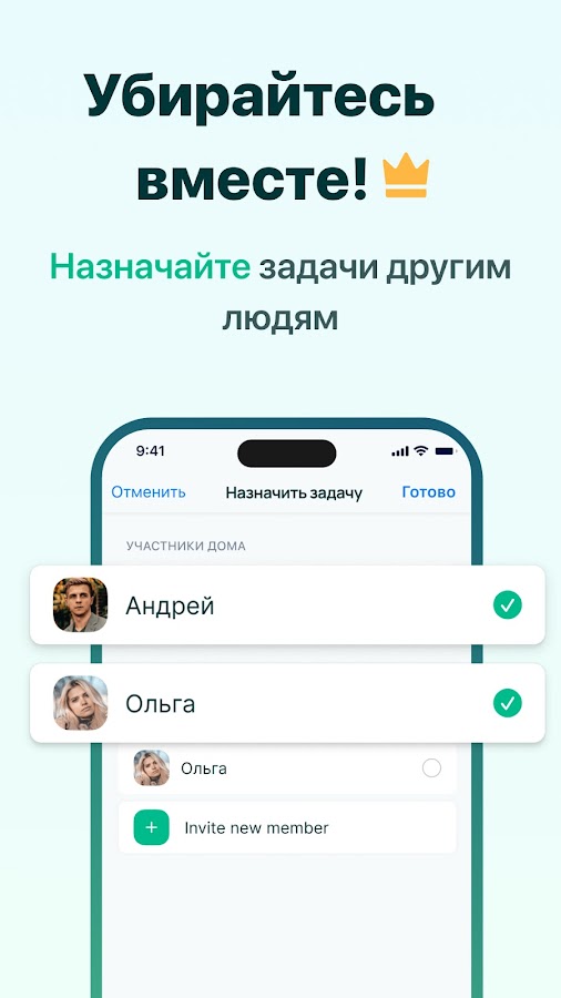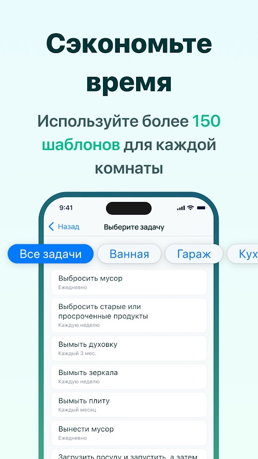 • Добавьте свои задачи по уборке и получите индивидуальный график уборки