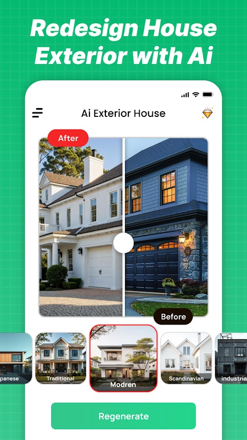 Преобразите свой дом и сад за считанные секунды! 🏡 Приложение Modern House Design: Home Ai использует передовой искусственный интеллект для редизайна любой комнаты, экстерьера или открытого пространства. Просто сделайте фото и мгновенно увидите потрясающие концепции дизайна. Переделывайте, ремонтируйте и переосмысливайте свое пространство с помощью ИИ.