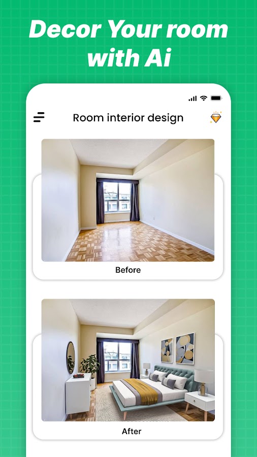 • Преображение комнаты и сада с помощью ИИ: Получите мгновенные концепции дизайна для любой внутренней или внешней зоны. Наш ИИ тщательно оптимизирует каждую деталь — от цвета стен и декора до элементов сада и садовой мебели.