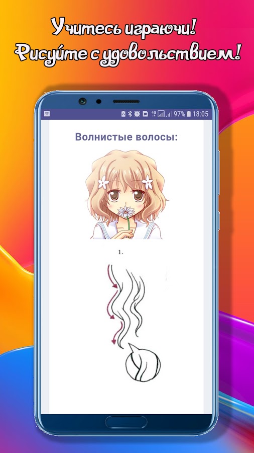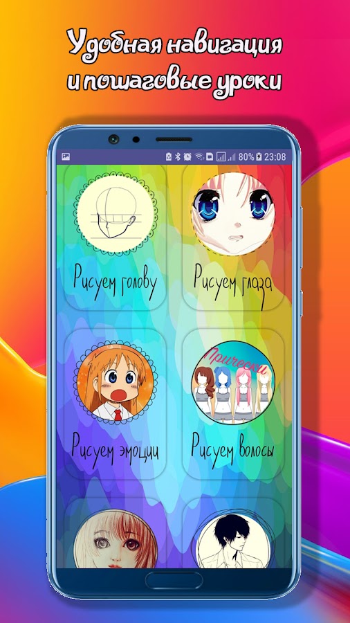 Благодаря подробному пошаговому руководству с описанием всех действий, у вас обязательно получится! Последовательный материал приложения содержит информацию как нарисовать голову, глаза, волосы. Всегда хотели научиться изображать няшных персонажей в полный рост? Для этого нужно знать основы пропорций и анатомии этого жанра. Просто откройте соответствующий раздел и переходите от теории к практике. Ведь мы собрали самые актуальные уроки рисования карандашом и объединили их в одном месте, чтобы карманное приложение Как рисовать аниме пошагово всегда было под рукой в вашем смартфоне или планшете.