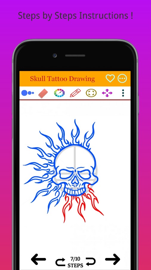 Если вы хотите нарисовать татуировку, то вы нашли лучшее место. Наше приложение поможет вам научиться рисовать татуировку черепа легкими способами. Вам не нужно беспокоиться, если вы не умеете рисовать тату, потому что наши уроки рисования представлены в пошаговом руководстве по рисованию татуировки. Все, что вам нужно сделать, это выбрать один из ваших любимых дизайнов татуировки черепа, а затем следовать пошаговому руководству.
