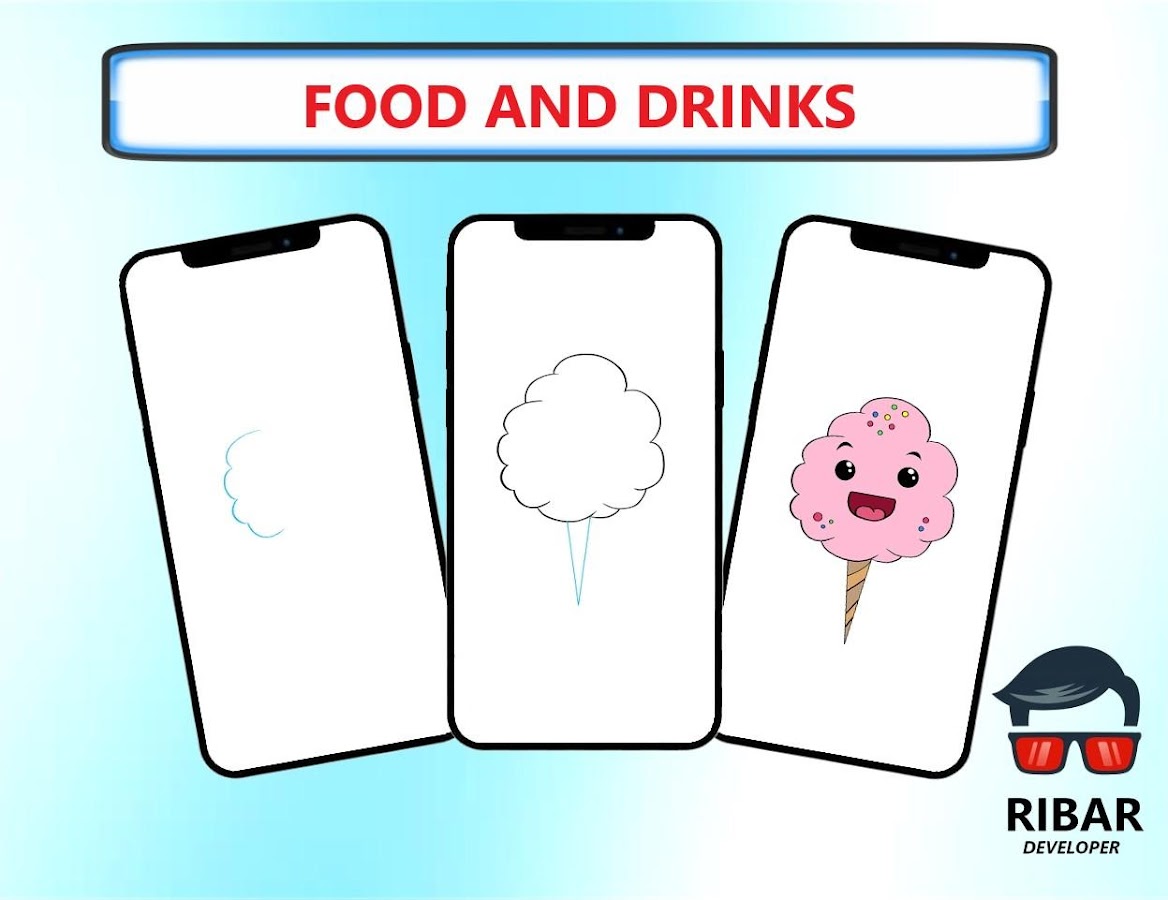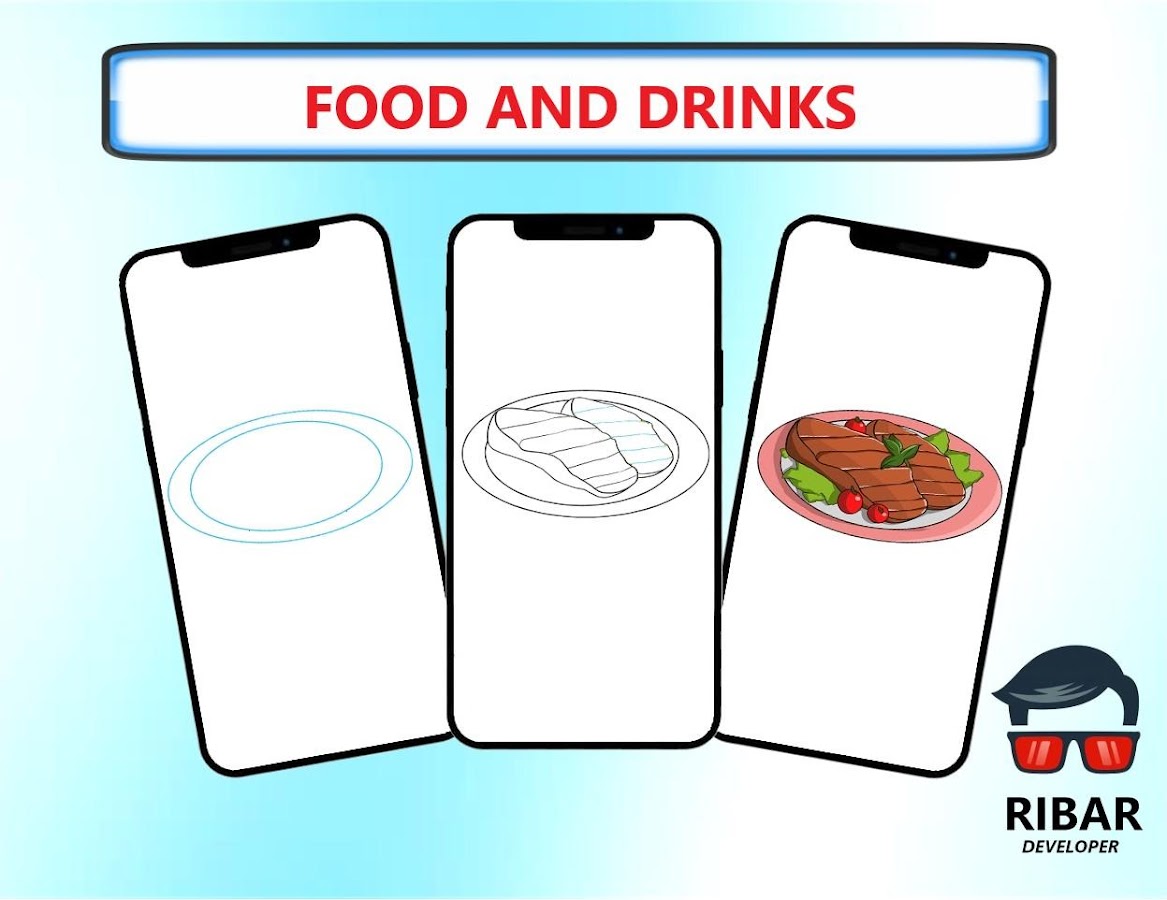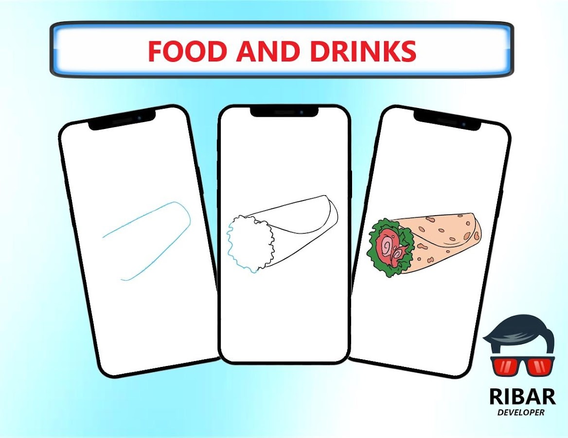 Как рисовать еду и напитки это простое приложение, которое поможет вам научиться легко рисовать различные виды еды и напитков с помощью превосходного пошагового руководства и подробного руководства 👍.