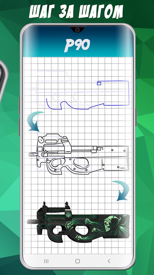 Приложение Как рисовать Стандофф 2 оружие поэтапно это уникальное приложение, которое научит вас рисовать оружие игры на листке бумаги. Для удобства мы реализовали уроки на листке в клетку, чтобы вы смогли нарисовать оружие из игры комфортно. Ведь у нас есть, что порисовать! Более 10 уроков как нарисовать оружие из игры Стандофф 2. Так чего же вы ждете? Скорее устанавливайте и у вас не возникнет вопросов, как рисовать персонажей аниме.