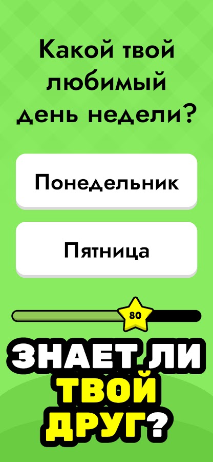 Всего в этой игре-викторине для друзей 18 различных тестов и 2 режима игры: