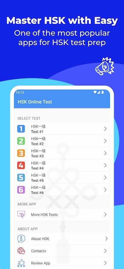 Скачайте приложение HSK-1 online test / HSK exam для Android бесплатно - последняя версия (1.8) уже доступна для установки на ваш телефон или планшет.