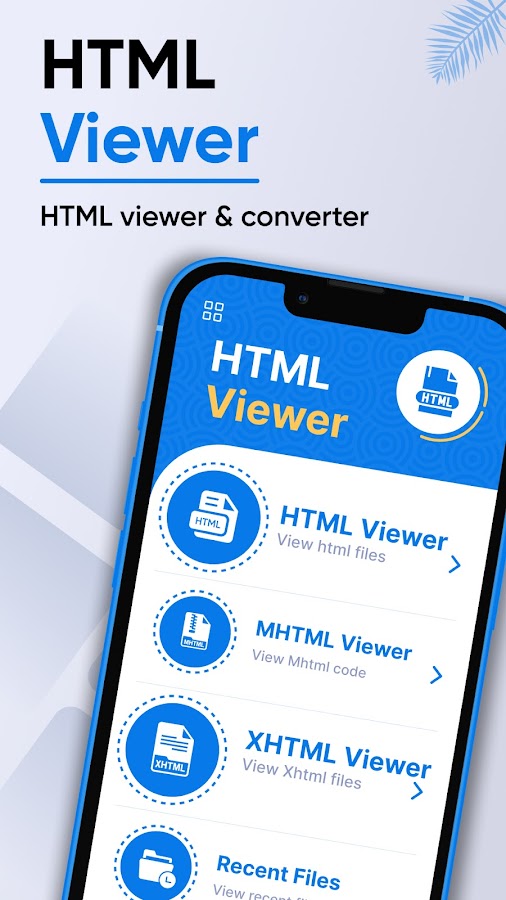 Домашний экран HTML-кода включает в себя семь основных функций; Средство просмотра HTML, средство просмотра MHTML, средство просмотра XHTML, последние файлы, создание HTML, преобразование и добавление в избранное. Функция просмотра HTML исходного кода HTML позволяет пользователю открывать, просматривать и читать файлы HTML, хранящиеся на устройстве. Функция просмотра MHTML конвертера XHTML в pdf позволяет пользователю просматривать, открывать и читать файлы MHTML. Функция средства просмотра XHTML средства просмотра MHTML для Android позволяет пользователю просматривать, открывать и читать файлы XHTML. Функция создания HTML в MHTML to pdf позволяет пользователю мгновенно создавать HTML-файлы. Преобразованная функция приложения конвертера MHTML в pdf позволяет пользователю просматривать преобразованные файлы непосредственно из приложения. Избранная функция конвертера MHTML в pdf позволяет пользователю просматривать избранные файлы, отмеченные пользователем.