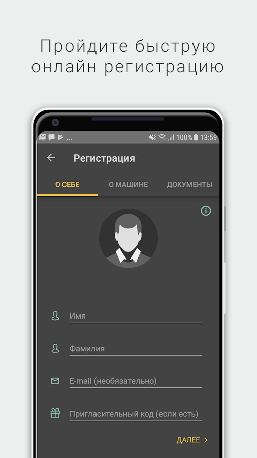 • Простая онлайн регистрация. Добавьте информацию о себе, о машине, привяжите банковскую карту и начинайте работу;
