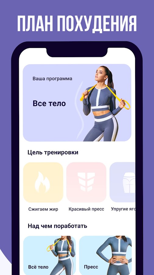 Вы легко сможете следить за своим прогрессом похудения и количеством сожжённых калорий.Выполняя план тренировок вы не только сможете убрать лишний вес, но и улучшить физическую форму, совместить приятное с полезным. Мы собрали различные виды упражнений, которые максимально помогут вам сбросить вес (упражнения на пресс, упражнения на ягодицы, на талию и т.д.).