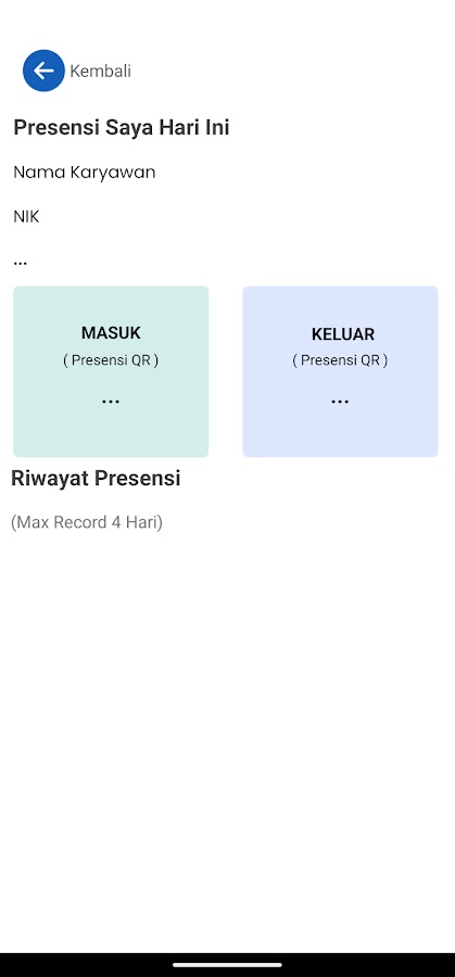 Данное приложение используется для учета отсутствия сотрудников Альфамарт и других внутренних нужд. Это приложение можно использовать с логином NIK и PIN-кодом HC.