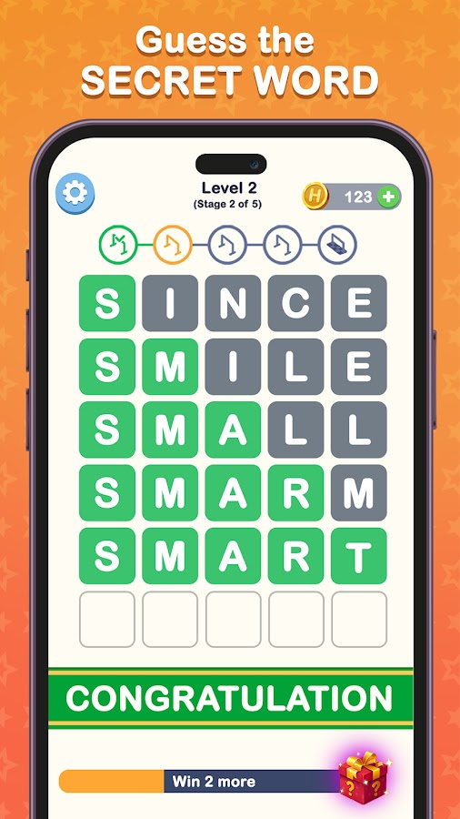 — Напрягите мозговые мышцы: готовы к более сложному испытанию? Проверьте свои навыки на более сложных уровнях с более длинными словами! Станете ли вы мастером преодоления препятствий?