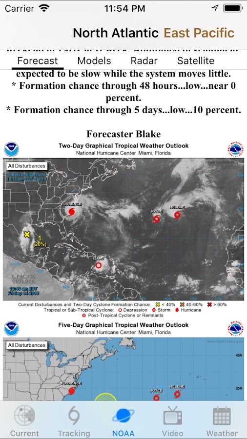 * Прогноз конуса (5-дневная неопределенность трек), вероятность скорости ветра, штормовой нагон карта (при наличии) и GOES Поплавок спутниковых снимков