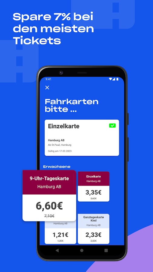 Как только вы узнаете, куда хотите отправиться, вам понадобится только правильный билет на общественный транспорт. От отдельных билетов до групповых билетов, вы можете найти множество билетов в приложении hvv и удобно покупать их как мобильные билеты на ходу.