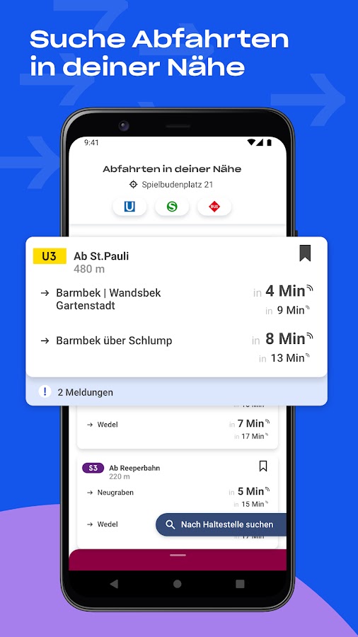 Знаете, куда вы направляетесь? Мы покажем вам, когда! Приложение hvv показывает вам отправления всех линий для остановок рядом с вами. Проведите пальцем вниз по главному экрану и узнайте о текущих отправлениях. Таким образом, вы можете сразу увидеть, когда вам нужно сесть, и избавить себя от хлопот по поиску пересадок. Таким образом, вы всегда будете отслеживать общественный транспорт.